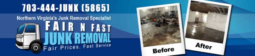 Fair N Fast Hauling is a full service hauling and junk removal company in Northern Virginia. We remove anything from old furniture to construction cleanup. Based in Northern Virginia, Fair N Fast Hauling, LLC is the most affordable junk removal and hauling service company. We provide a whole range of hauling and junk removal services all over Northern Virginia, Maryland and Washington, DC. We guarantee your satisfaction! Our primary service area for hauling and junk removal includes Northern Virginia, Maryland and Washington, DC. Some of the counties in Northern Virginia that we provide junk removal and hauling services to are Loudoun, Fairfax, Prince William, Arlington and Alexandria counties. In Maryland, we provide junk removal and hauling services primarily in Prince George and Montgomery County. We are expanding our services. Therefore, wherever you are in Northern Virginia, Maryland or Washington, DC — we have you covered. PLEASE CALL US TODAY AT 703-444-5865